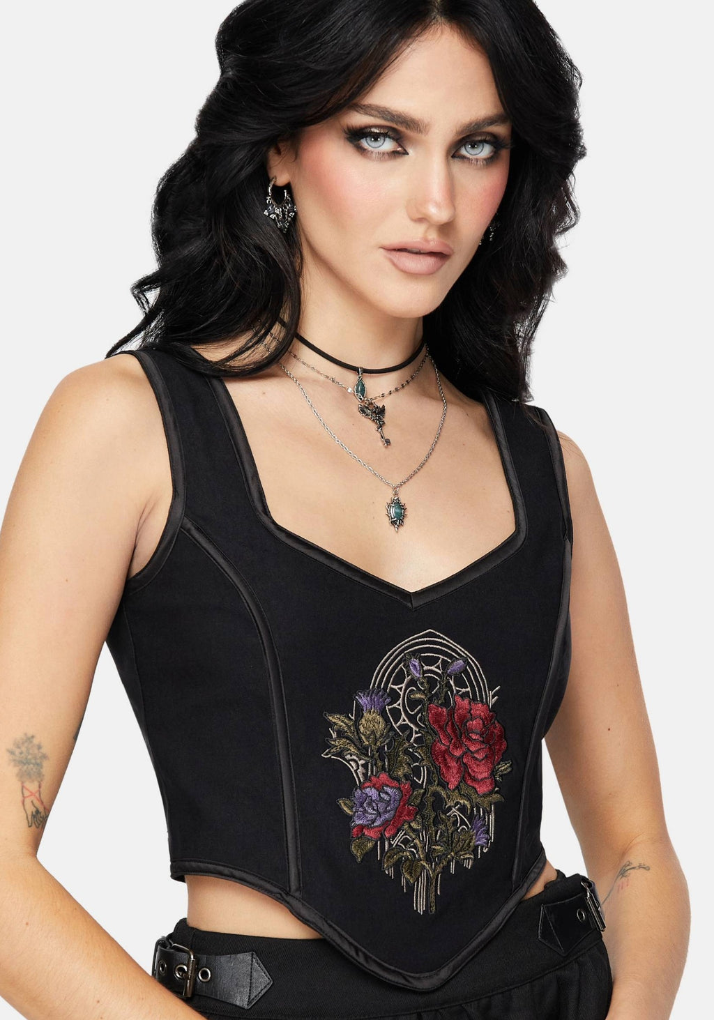- Black Embroidered Corset Top