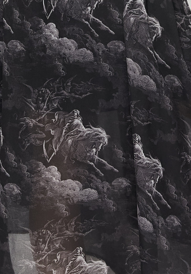 - Black chiffon midi skirt with apocalyptic Death on the Pale Horse print