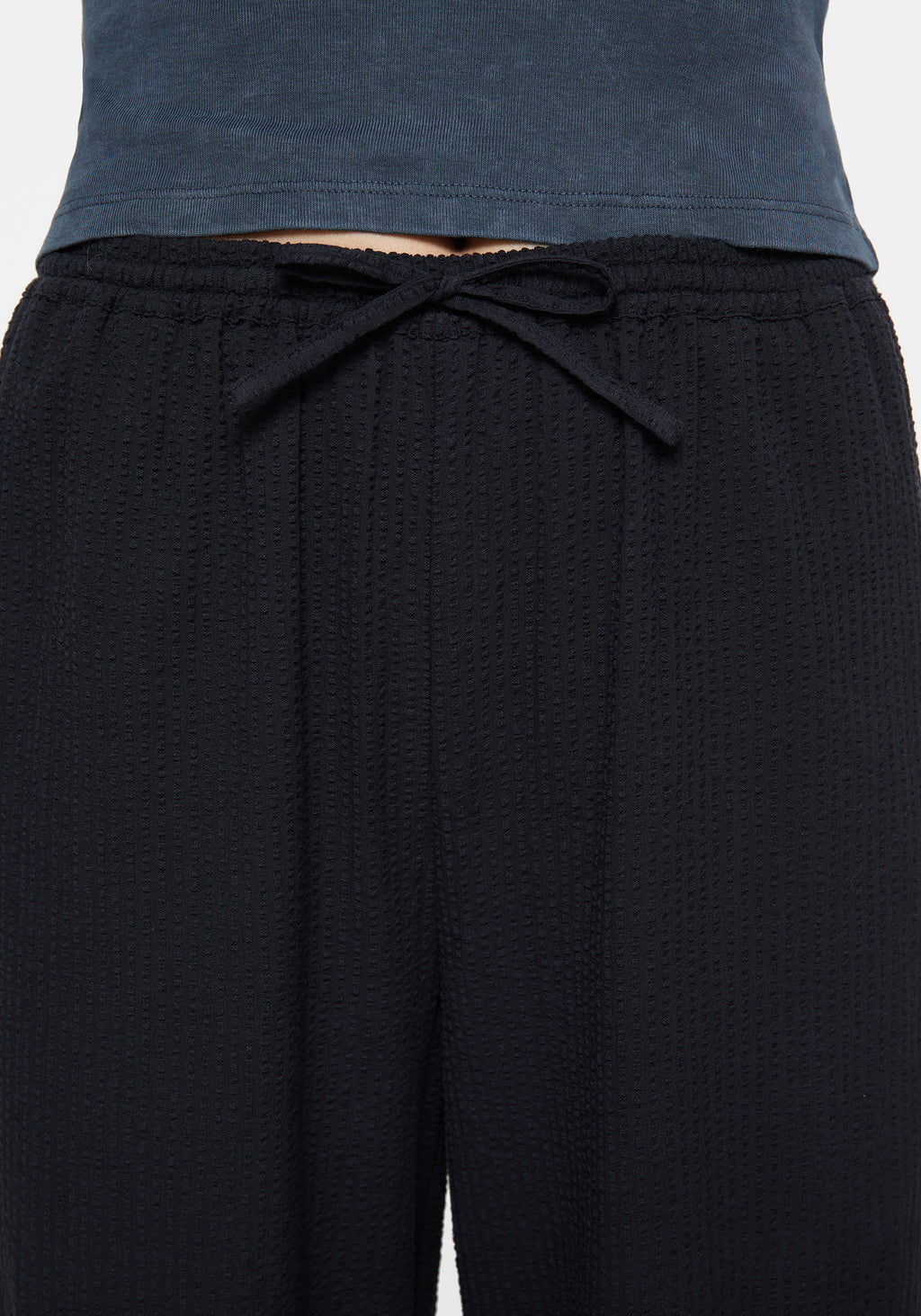 • Black Seersucker Straight Leg Trousers