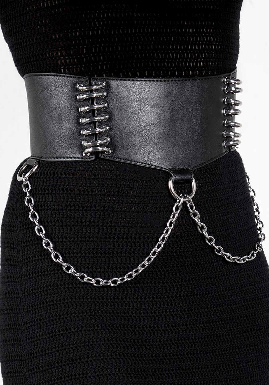 Disturbia branded belt buckle closure on back to get the perfect fit