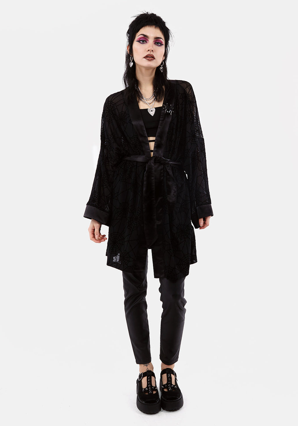 🕸️ Sheer spiderweb kimono with satin edging