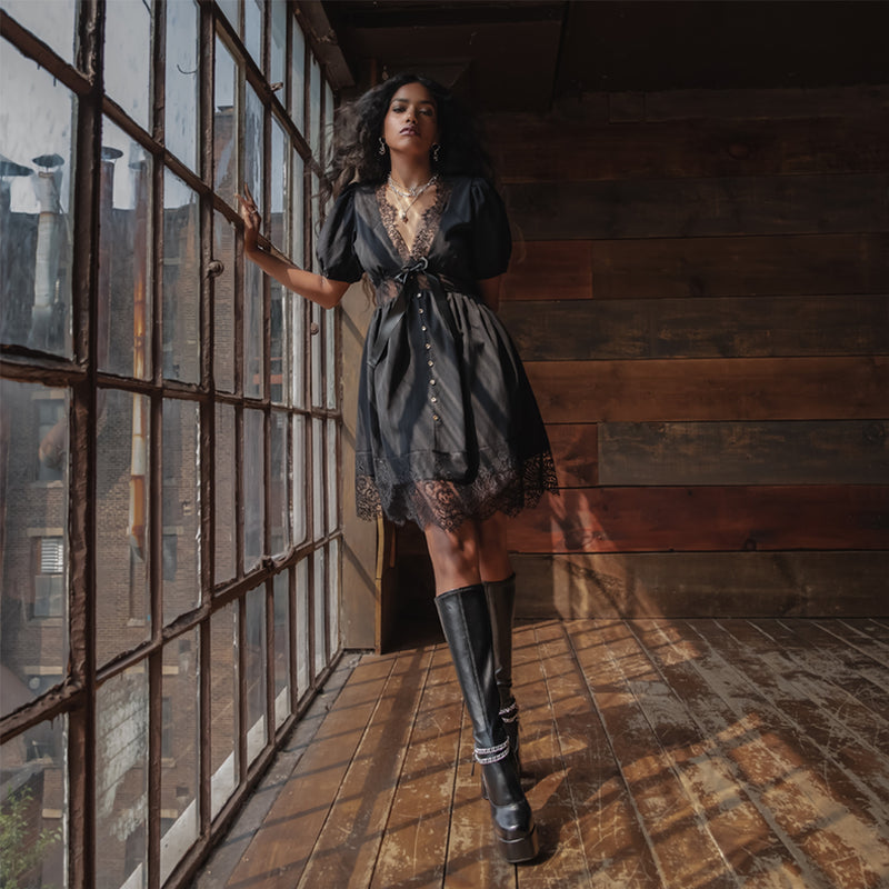 We create pieces that speak to the bold, the daring and the unapologetic, weaving a symphony of sumptuous fabrics, intricate details and unexpected prints, where light and darkness intertwine to create otherwordly fashion.