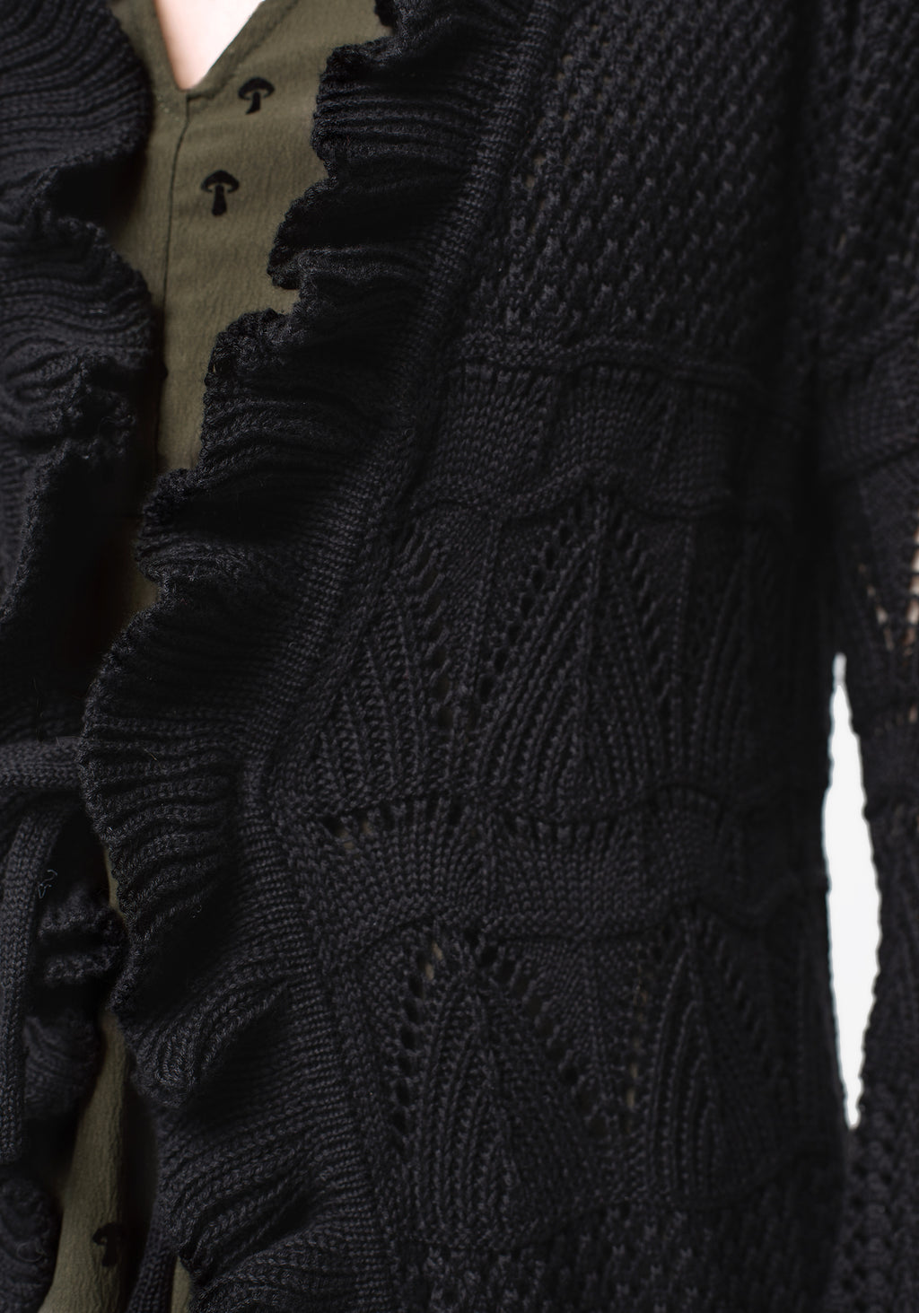 To care for your cardigan: store neatly folded in a cool, dry place, reshape after washing & lay flat to dry in order to best maintain its shape.