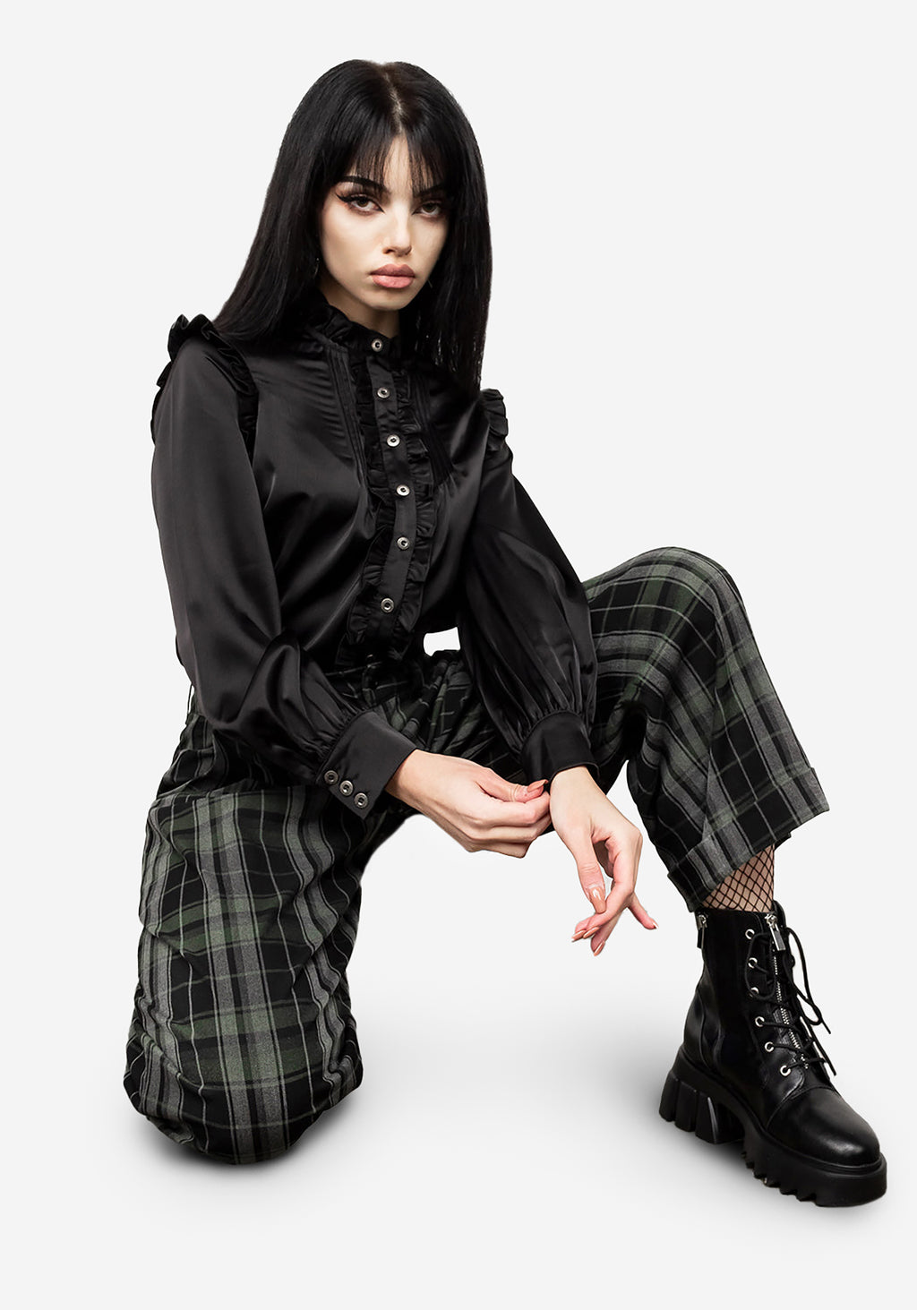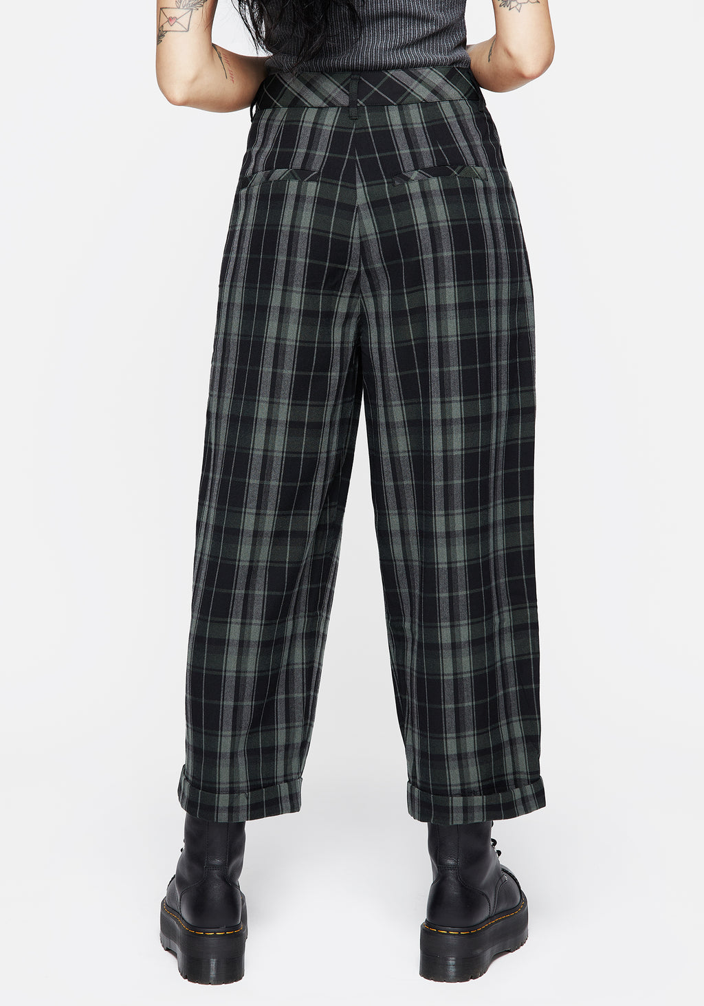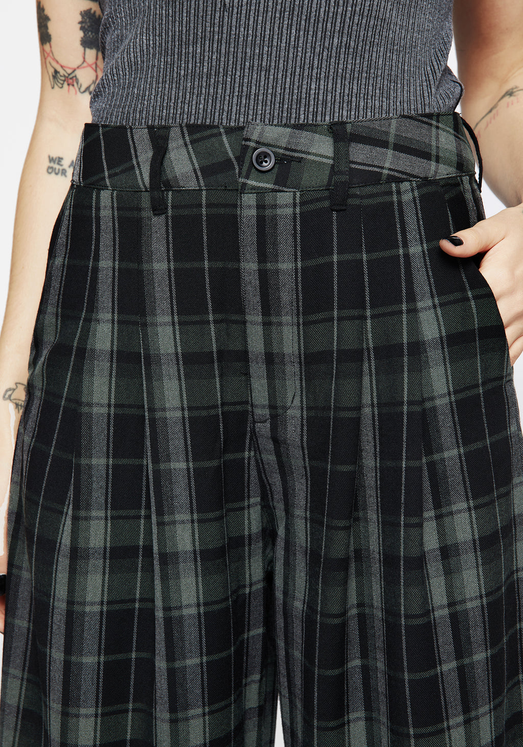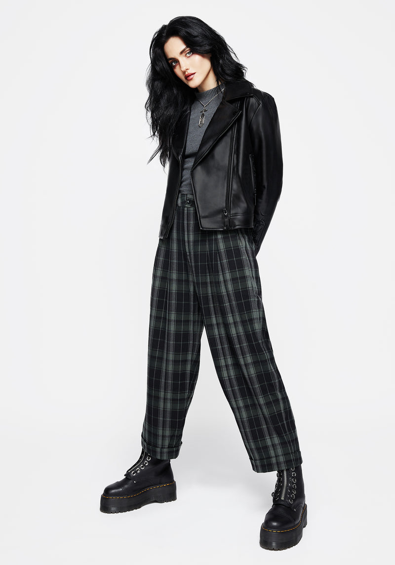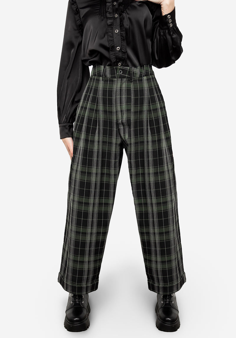 ❦ Grey, black & green check crop pants