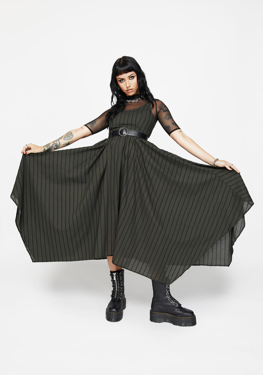 - Fit ‘n’ flare shape with a dramatic midaxi-length skirt