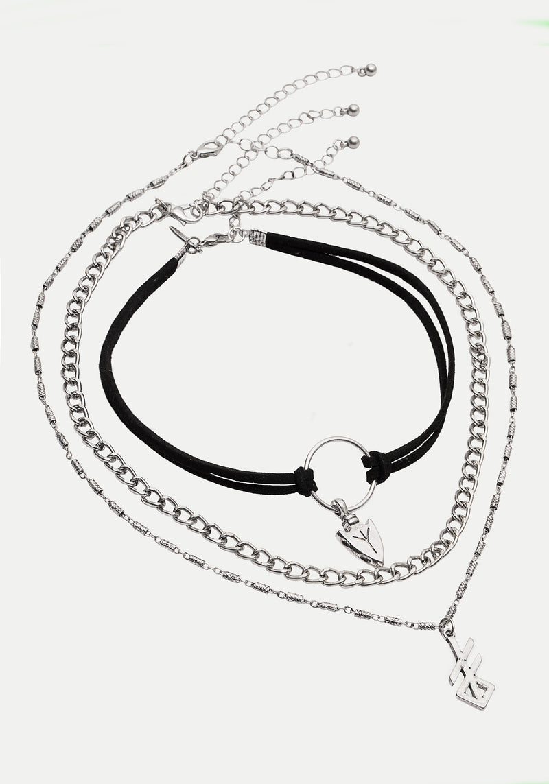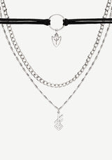 Experience is the mother of wisdom – and what experience isn’t improved by a little gleaming silver? Viking symbols combined to create the bindrune representing wisdom adorn this layered necklace. The faux suede choker holds an O-ring from which one runic charm hangs, while the other dangles lower on a long, decorated bar chain. A silver curb chain fills in the negative space. Each necklace fastens with a lobster clasp, allowing you to wear the set together, alone, or mixed & matched with any from your own collection. Be eclectic, be wise, but most importantly, be yourself.