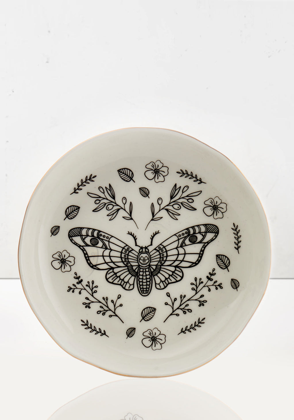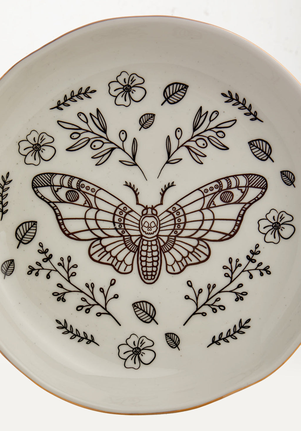 ✧ Floral death moth print finished with a gold foil rim