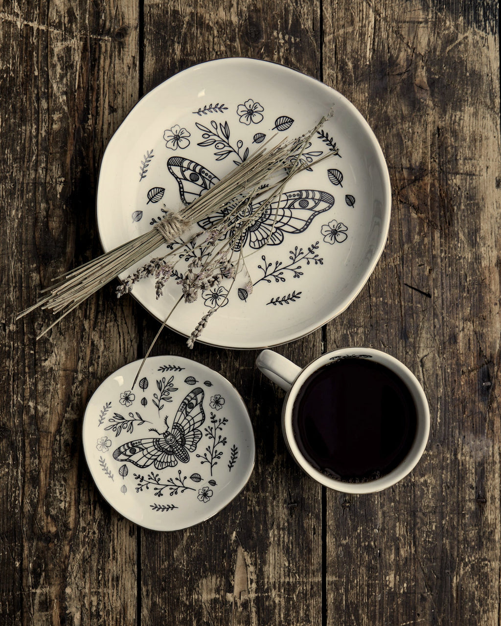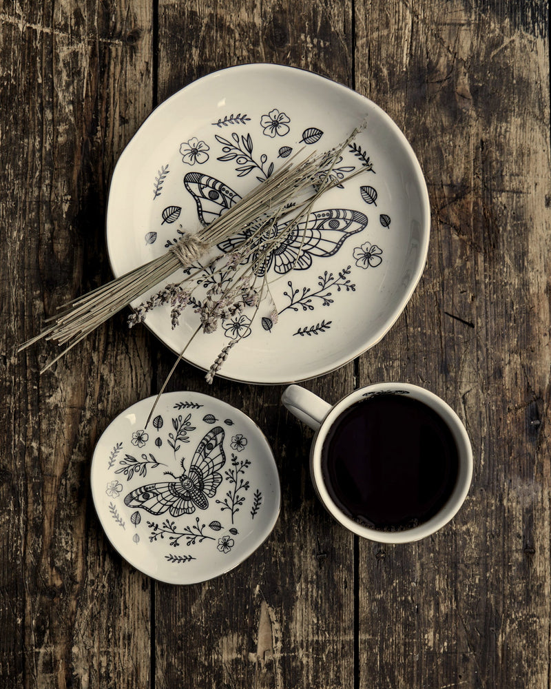 ✧ Ivory plate with Death Moth line illustration