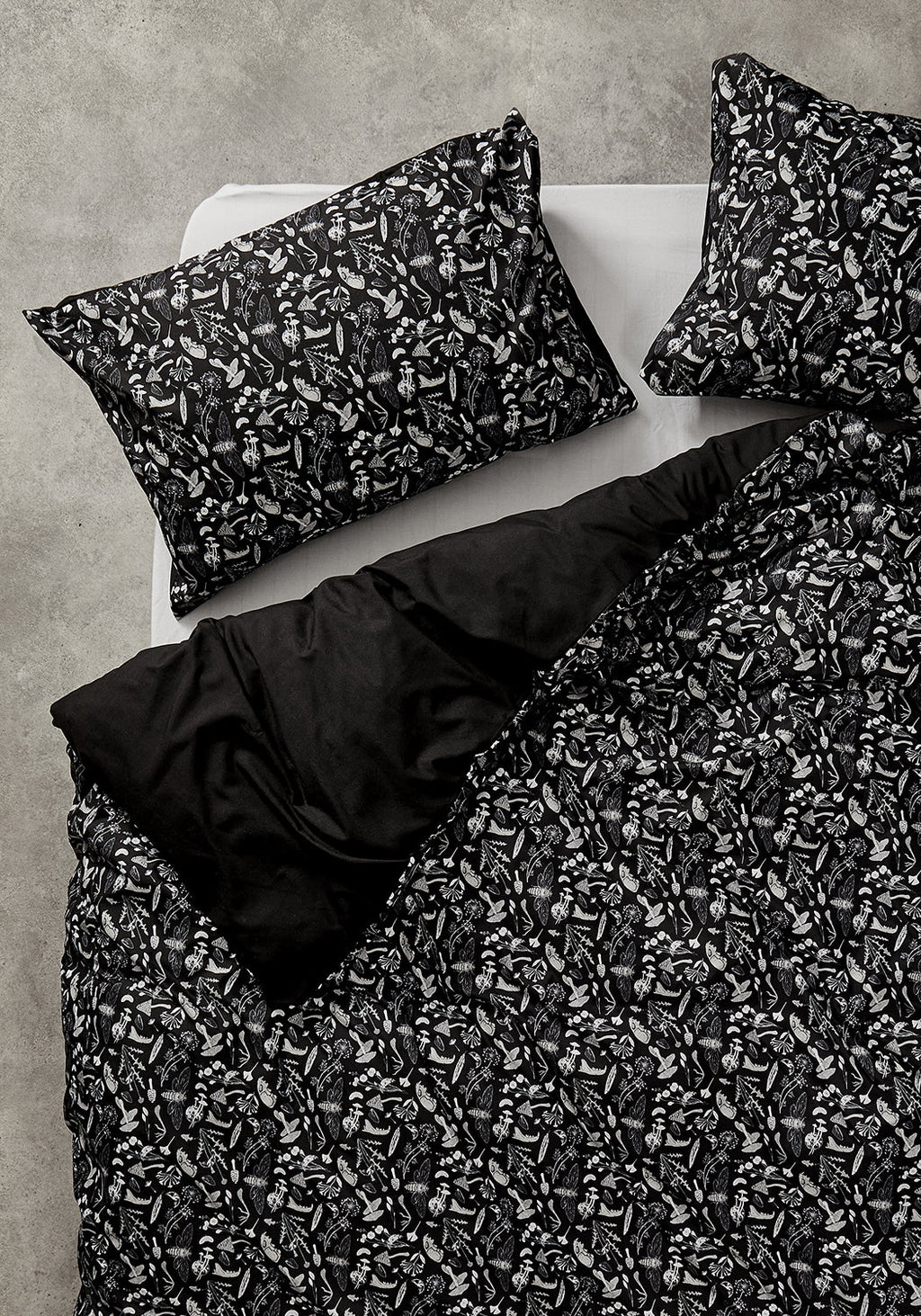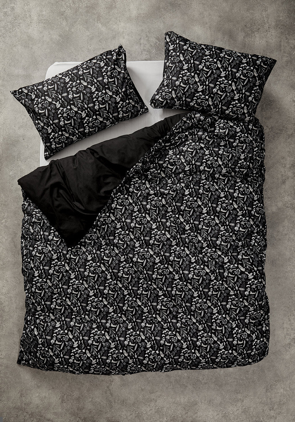 It’s impossible to know what tomorrow holds, but at least be rest assured of a good night’s sleep! Constructed from satiny soft, easy-care fabric, our bedding sets come with everything you need to make your bed and lie in it. An enchanting fade-resistant earth magick print envelopes a dark black base to whisk away busy thoughts that’d keep you awake at night. The duvet cover's black wood effect closure buttons and internal ties keep your duvet exactly where it should be. Two housewife pillowcases slip easily onto your pillows so you can slip easily into your dream state.