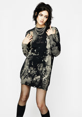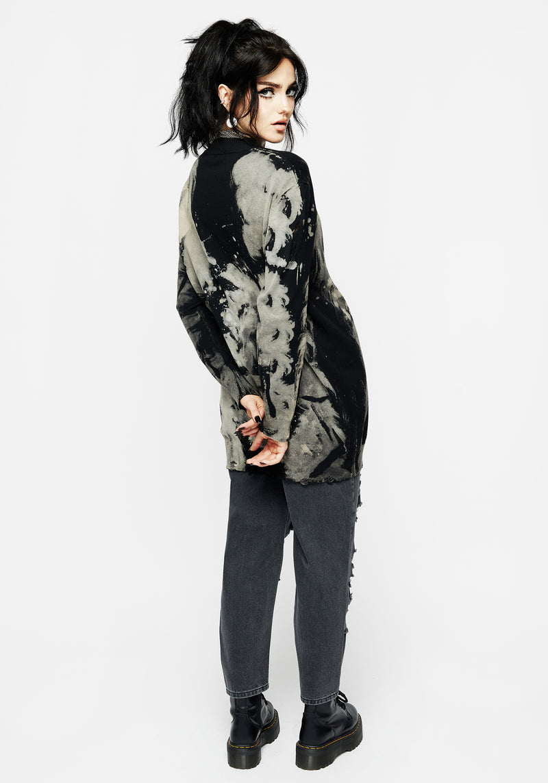 - Black & grey acid-washed embroidered jumper