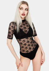 - Black floral lace short-sleeved bodysuit