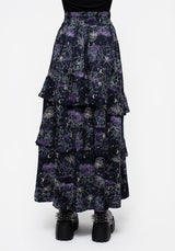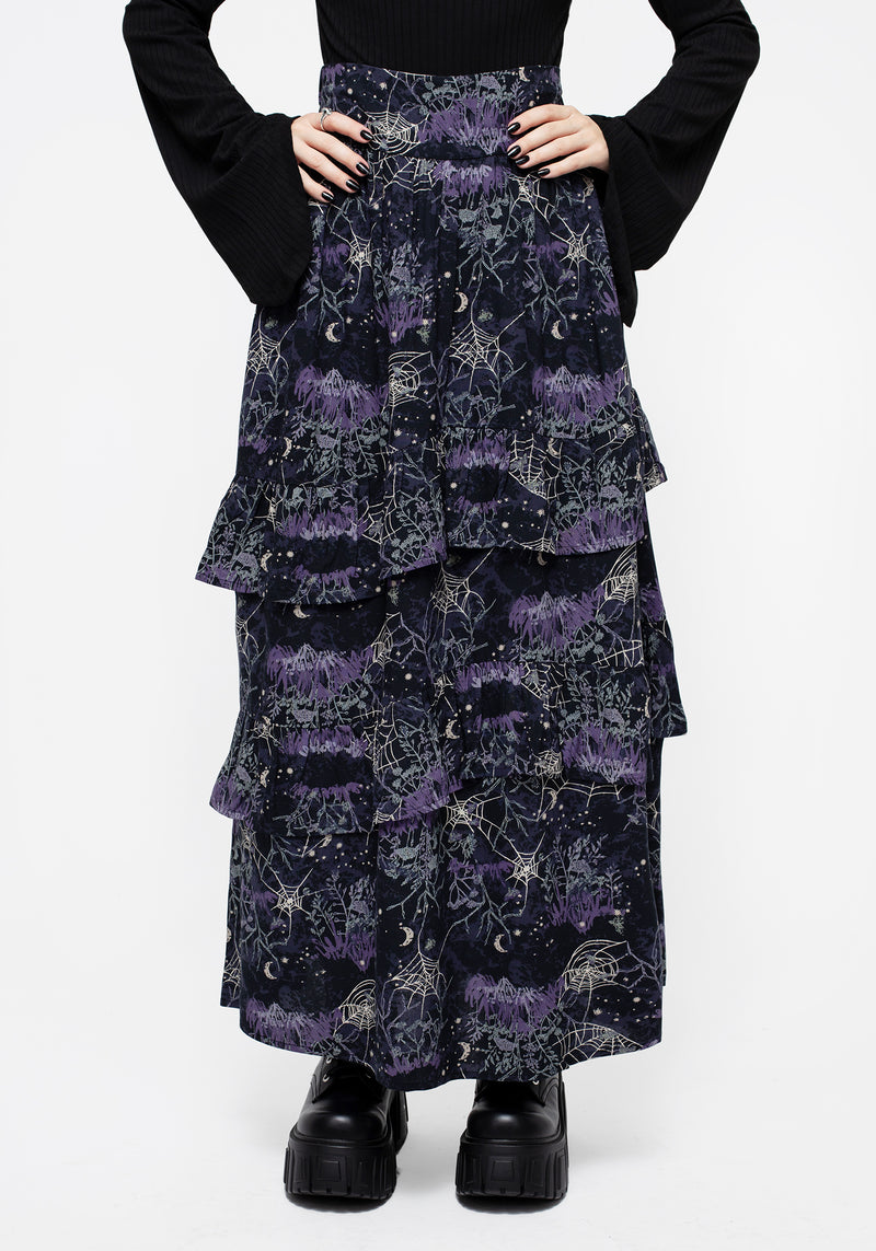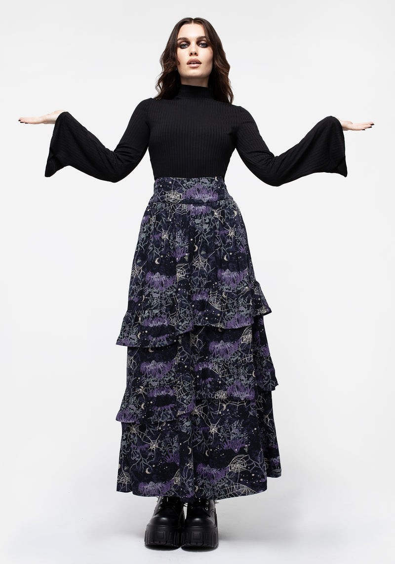 - Maxi-length skirt with gathered panels to create voluminous tiers