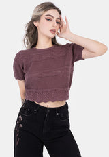 • Purple Knit Pointelle Short Sleeve Crop Top