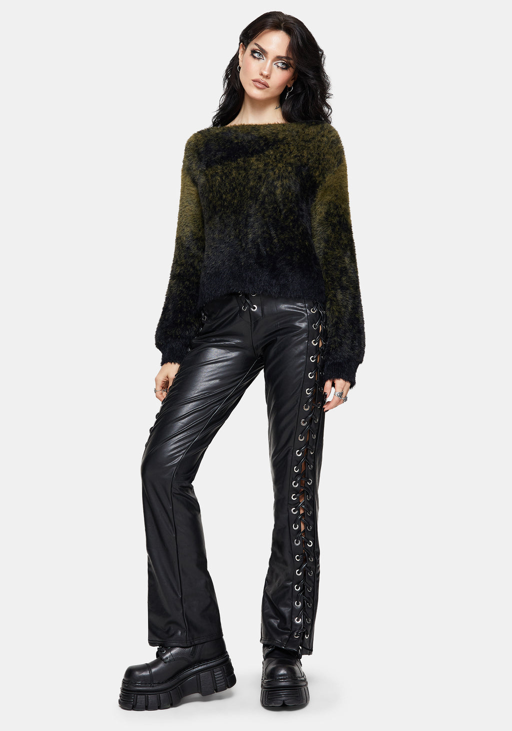 • Green Fluffy Ombre Tie Dye Sweater
