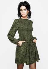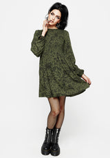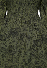 - Green floral print long sleeve mini dress