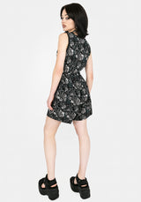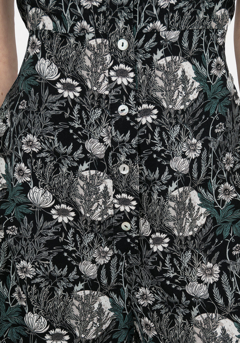 - Black monochromatic floral button-up playsuit