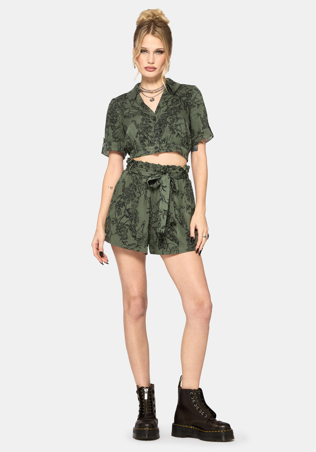 • Green Cropped Button Up Shirt