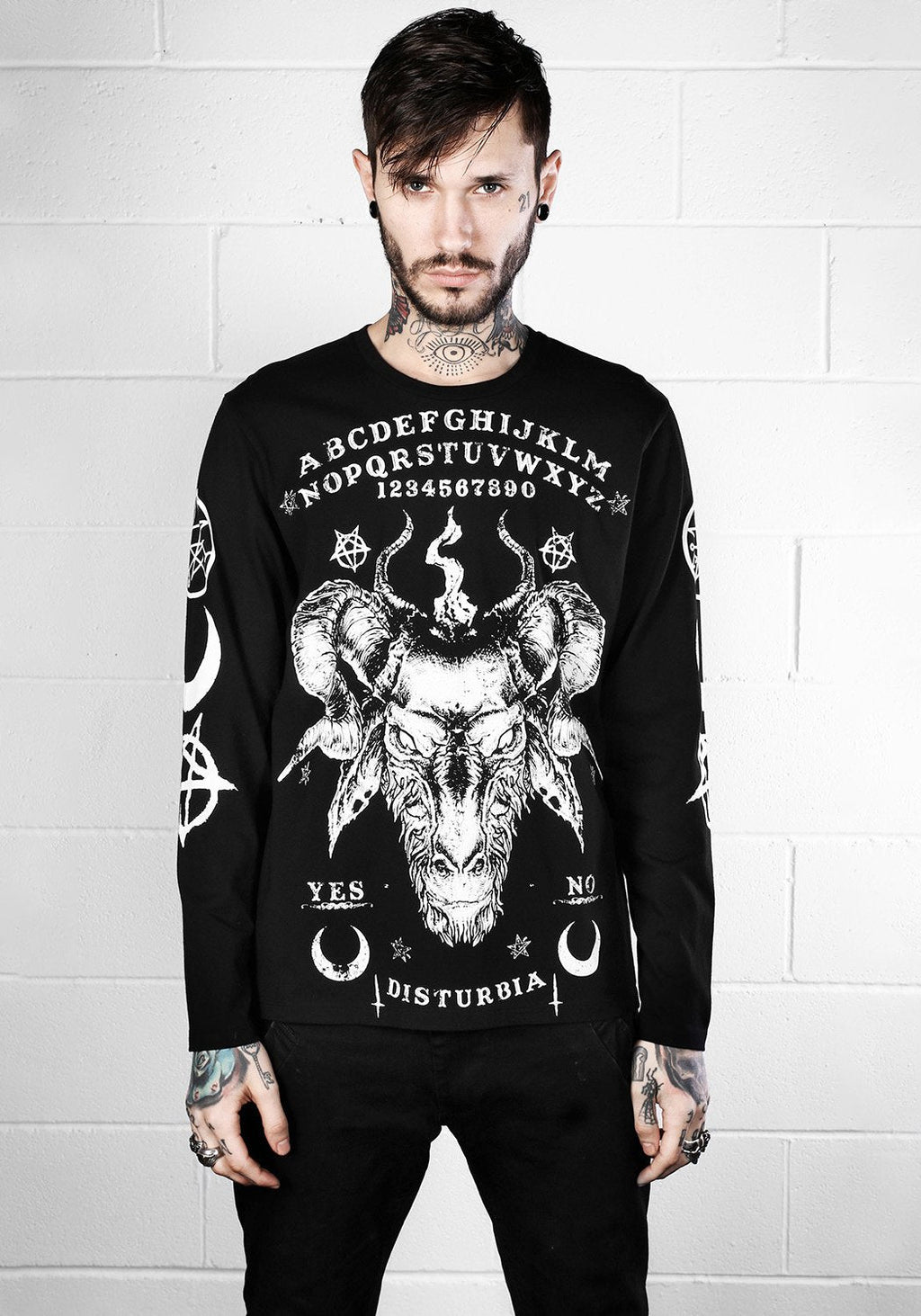 100% cotton long sleeve tee with front, back and sleeve prints.