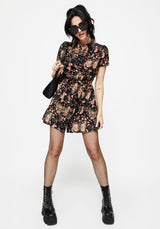 • Black Floral, Moth & Skeleton Print Mini Shirt Dress
