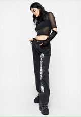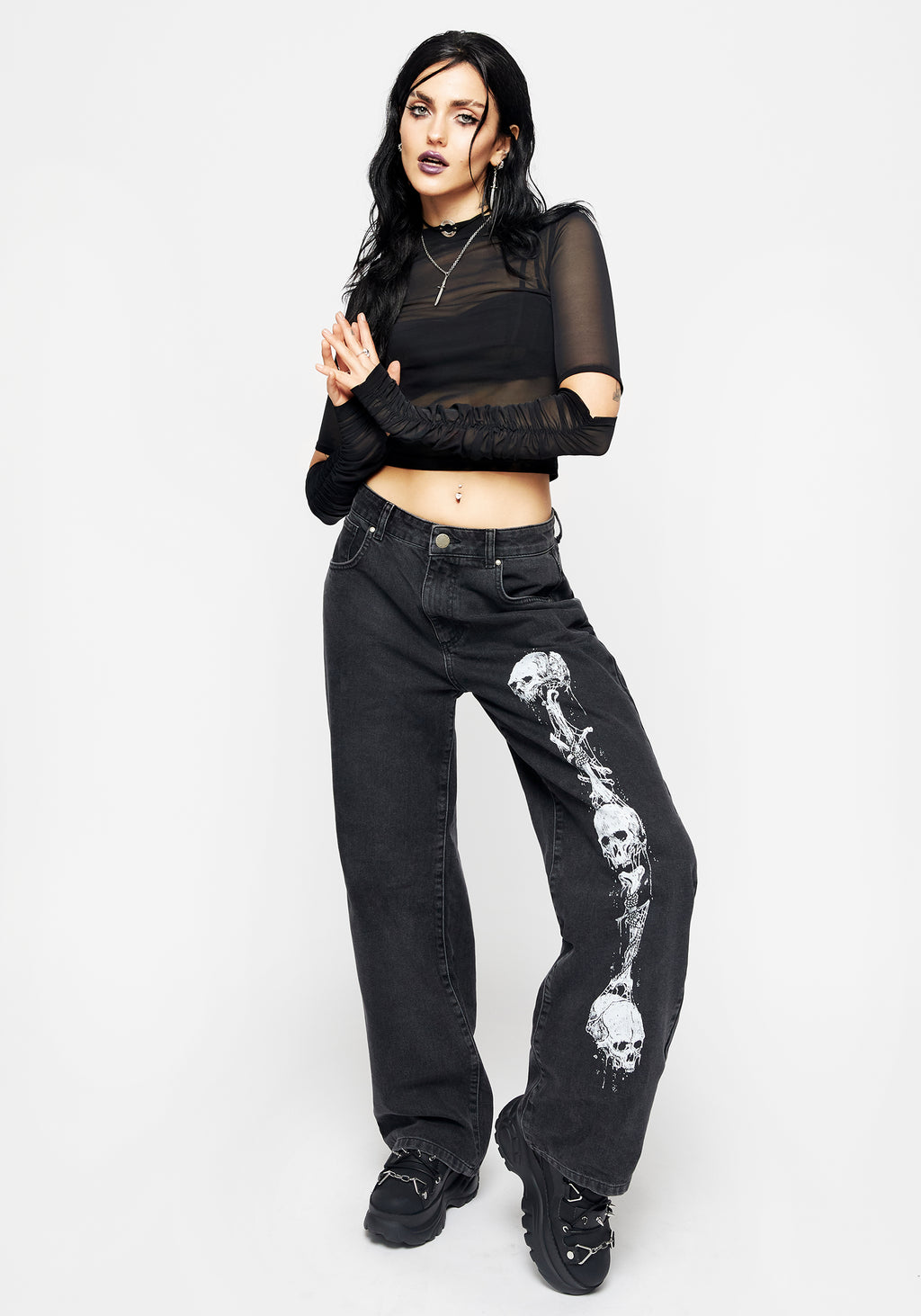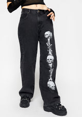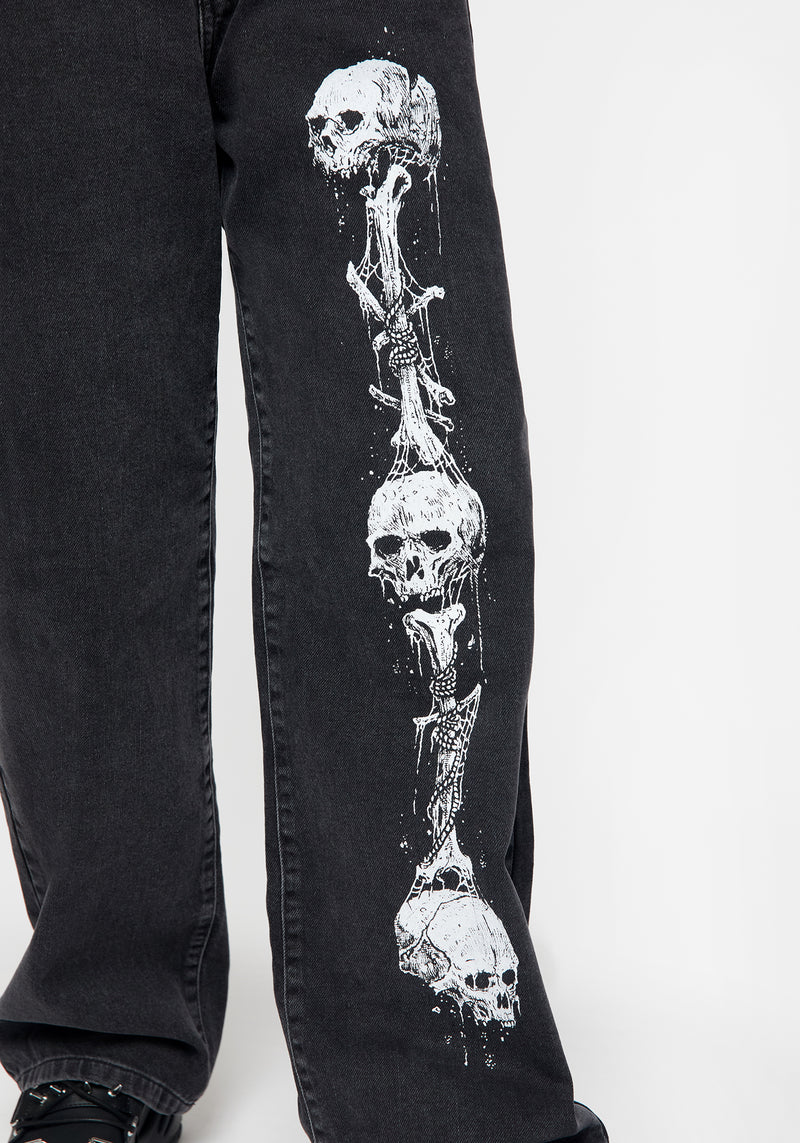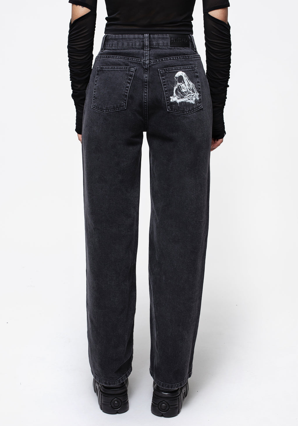 - Contrasting white grim reaper graphic print on leg & back pocket