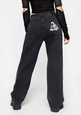 - Black washed wide-legged denim jeans