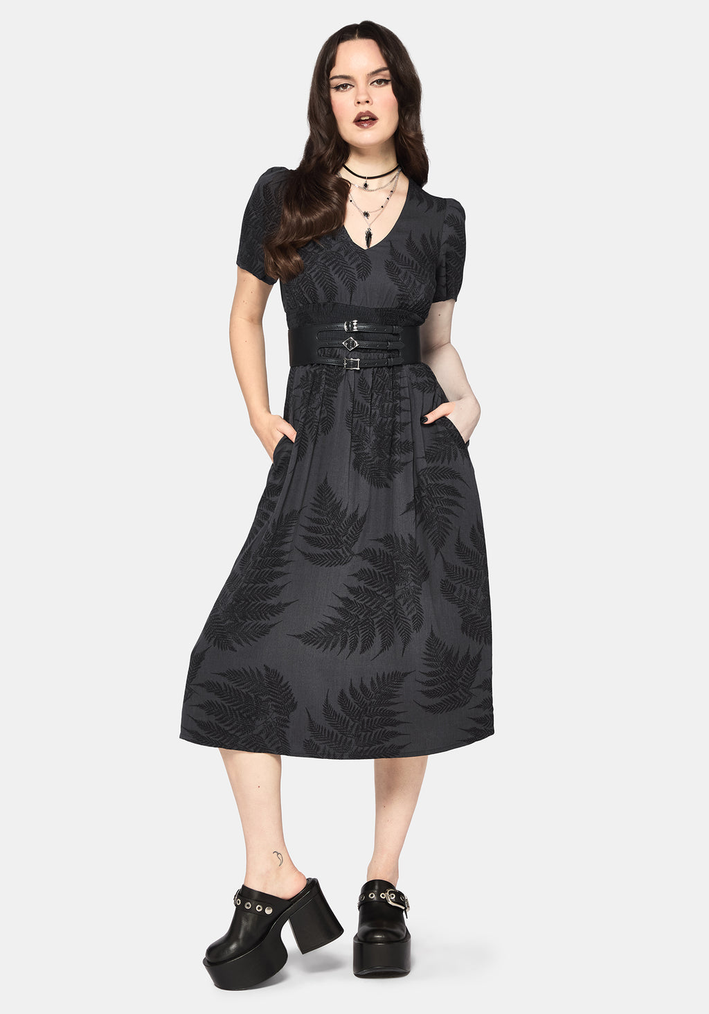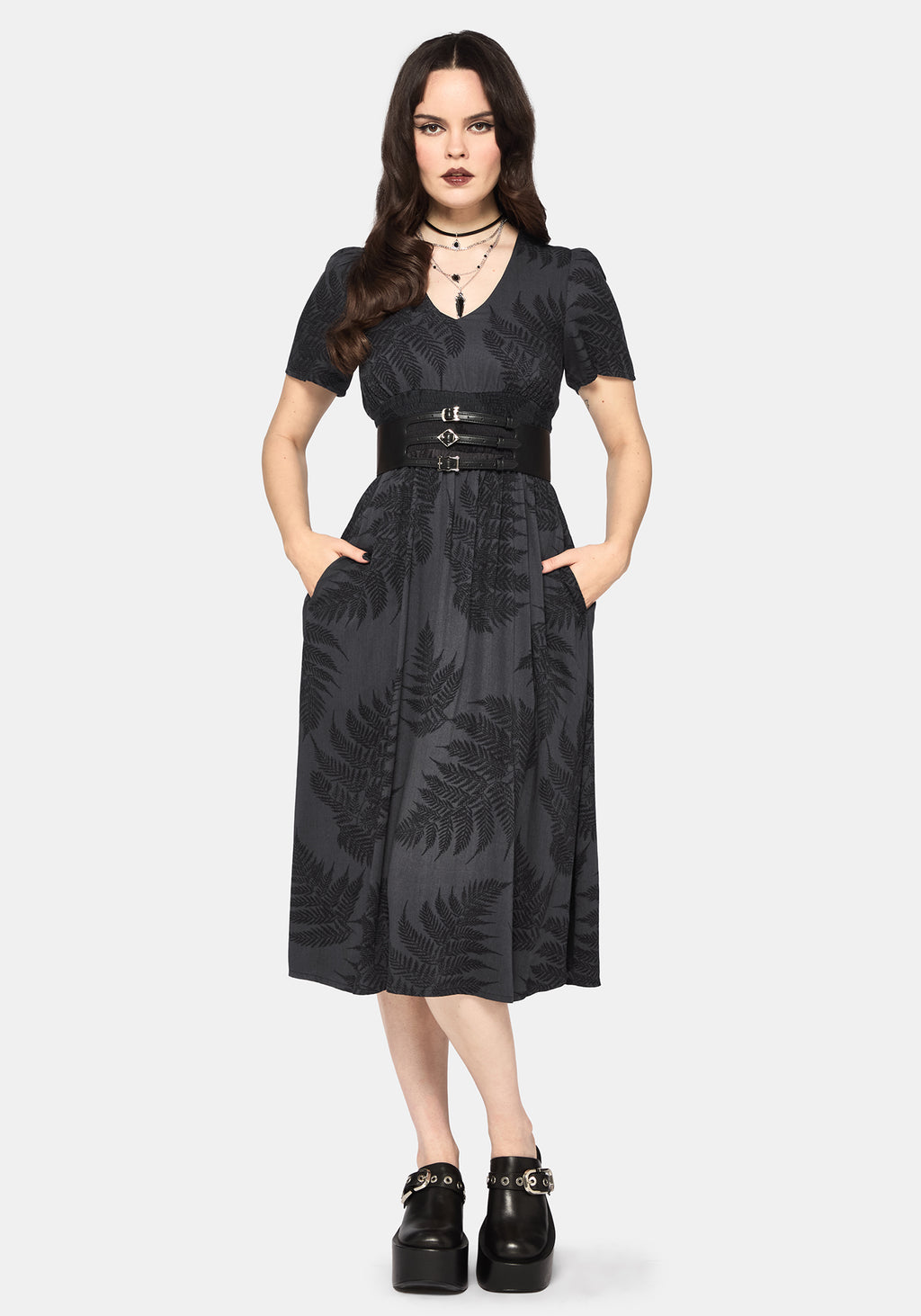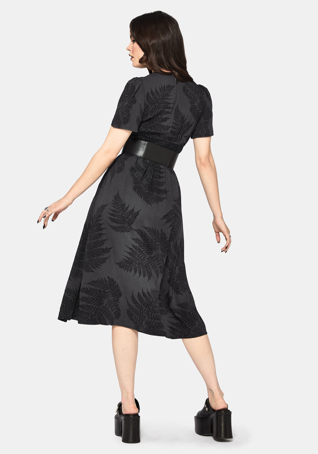 • Fern All-Over Print Grey Midi Dress