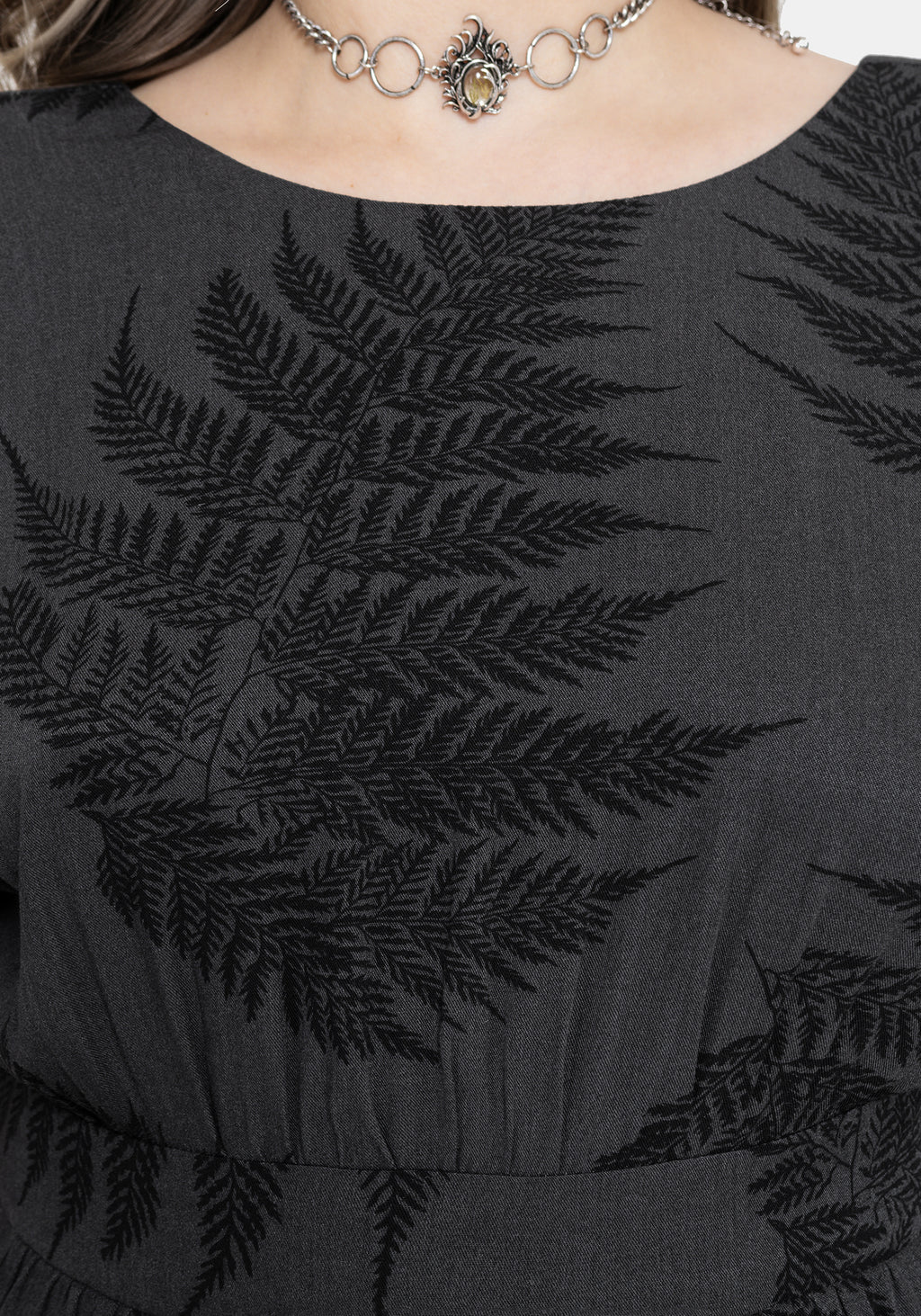 • Fern All-Over Print Grey Mini Dress