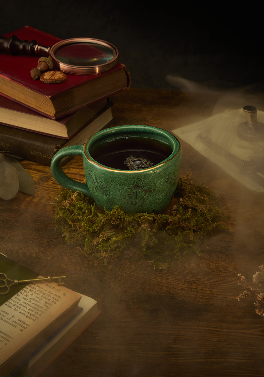 - Mossy green mug with ‘hand-wrought’ finish