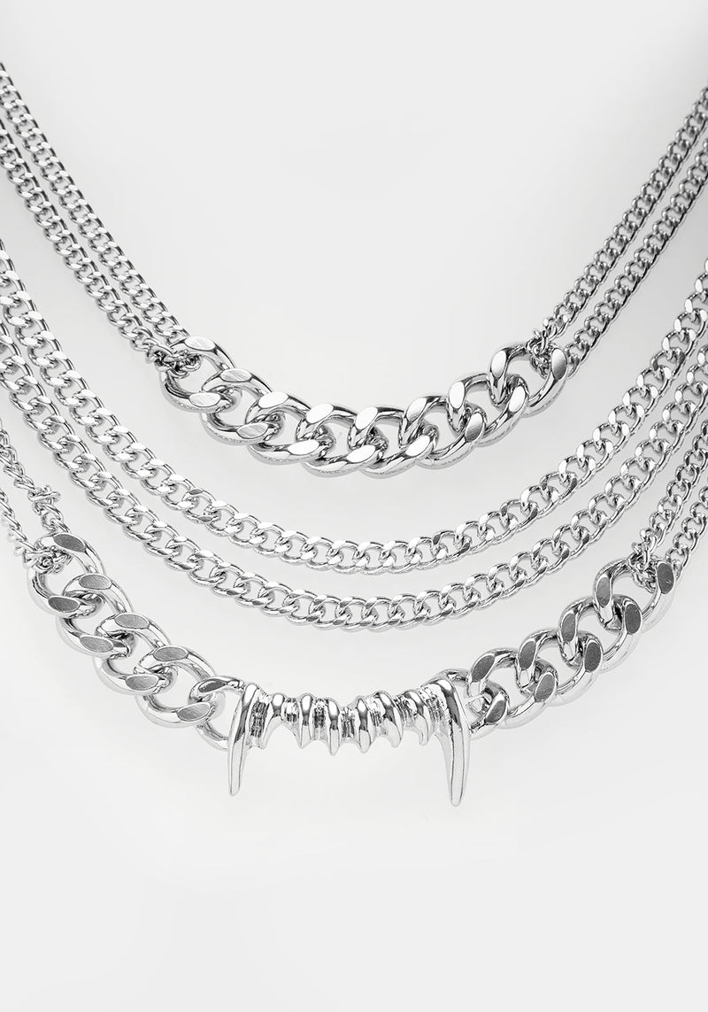 Ya got grillz, kid. This multichain necklace is made for those who love to make a statement, and want to make it loud. A silver vampire teeth charm and two-centimetre curb chain charm hang between dual chunky chains, giving you a real bang for your buck. Connected and fastened via a lobster clasp, it’s a real one-and-done moment to bring the drama straight to you.