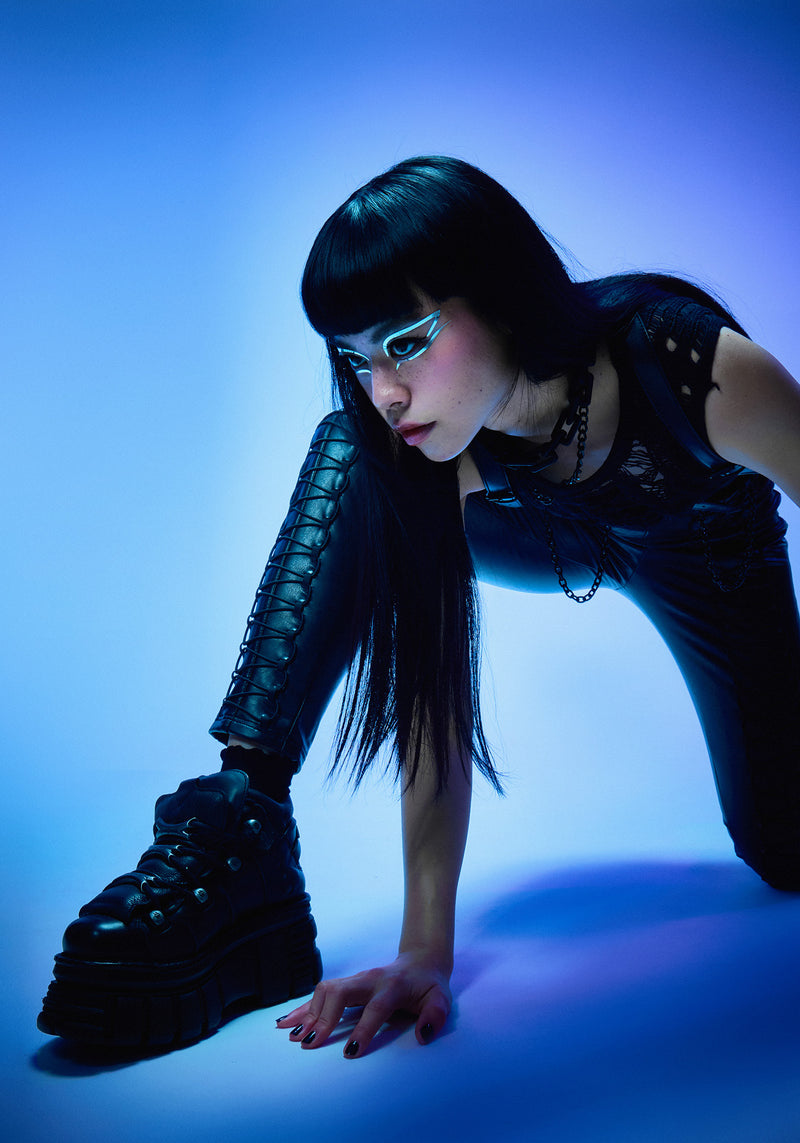 - Comfortable stretch PU leather fabrication for the biker look without the discomfort
