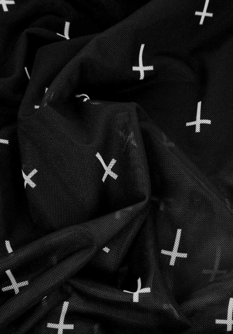 It's here, it's sheer, it's unholier than sipping blood from a skull-shaped goblet. Layer-up mesh and crucify minds in this see-through dress with contrast slip underneath. Simply slink into it, tie on the 90s-cute crop cardi (with lettuce edge hem & cuffs), and slay. With plenty of stretch & all-over cross design, it's the devilish one-and-done outfit we all need in our lives.